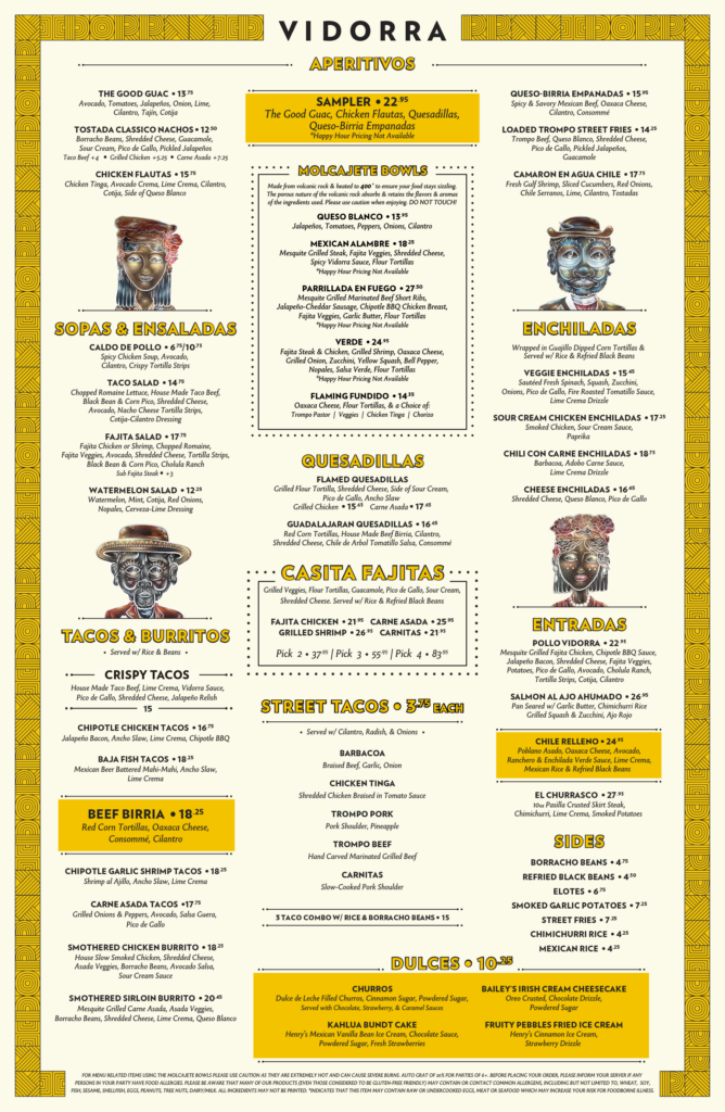 Vidorra Addison is pleased to offer limited reservations for groups of up to 12 guests. For groups of 13-19, please email our management team to check availability at infoaddison@vidorracocina.com